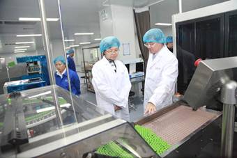 2018年4月25日,山东省食品药品监督管理局党组书记、局长马越男到杰华青岛生产基地调研,杰华生物集团CEO刘龙斌博士向马局长一行做相关汇报。