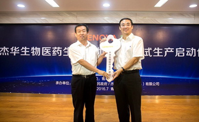 2016年7月18日上午,杰华生物医药生产基地交接暨试生产启动仪式在山东省青岛市崂山区举行,青岛市委副书记、市长张新起,市委常委、副市长王广正等领导出席活动,青岛市委常委、崂山区委书记齐家滨向杰华生物集团CEO、杰华生物技术(青岛)有限公司董事长刘龙斌交付竣工钥匙。青岛生产基地于2015年6月启动建设,2016年4月建成生产楼,5月完成生产线建设。